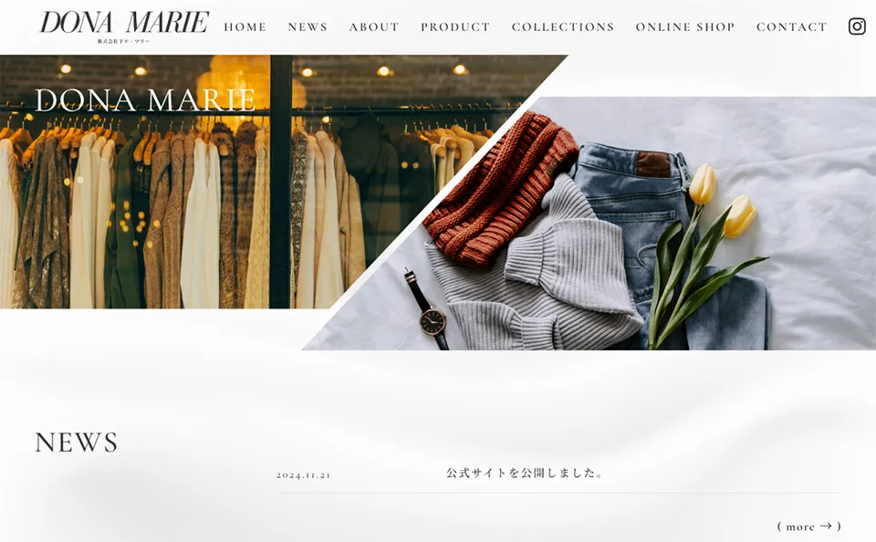 株式会社ドナ・マリーでは、レディースの服飾を専門に、卸商品と特別注文商品の2ラインで製品を展開。