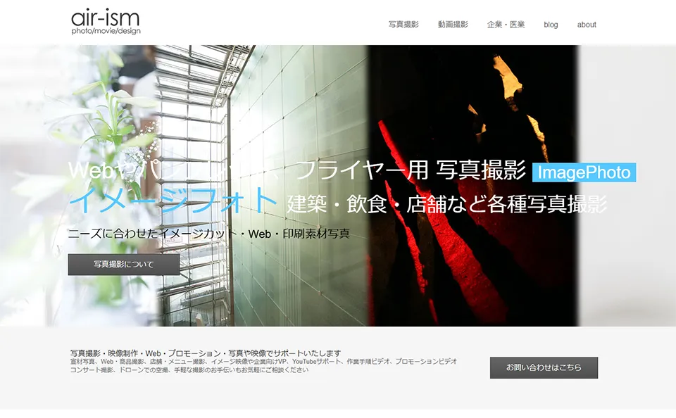 air-ismは、名古屋市を拠点に、企業・店舗・個人事業主の方を中心とした動画制作・写真撮影を行っているスタジオです。 宣材写真やプロフィール写真、商品撮影、店舗撮影、メニュー撮影、建築撮影をはじめ、コンサートやイベントなど幅広いシーンでの写真... -