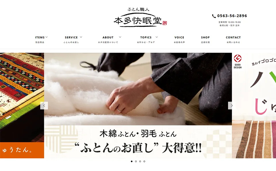 愛知県西尾市にある「ふとん職人 本多快眠堂」です。 当店は、国家資格「寝具製作一級技能士」と「睡眠改善アドバイザー」の資格を持つ店主が営む、布団と寝具の専門店です。 ただ既製品を売るだけでなく、職人の手による布団の仕立て、リフォーム(打ち直... -