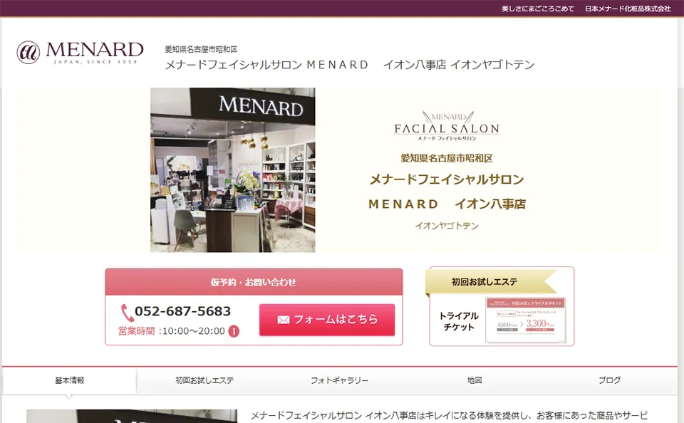 メナードフェイシャルサロン イオン八事店はキレイになる体験を提供し、お客様にあった商品やサービス、方法を提案することで、美しさの可能性を拡げていくサロンです。 店舗/企業名 MENARD イオン八事店 所在地 〒466-0834愛知県名古屋市昭和... -