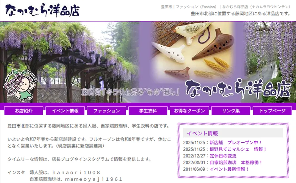 豊田市北部に位置する藤岡地区にある婦人服、自家焙煎珈琲、学生衣料の店です。 店舗/企業名 なかむら洋品店 所在地 〒470-0451 愛知県豊田市藤岡飯野町下貝戸648-6 TEL 0565-76-2710 URL http://nakamura-yohinten.com/ ... -