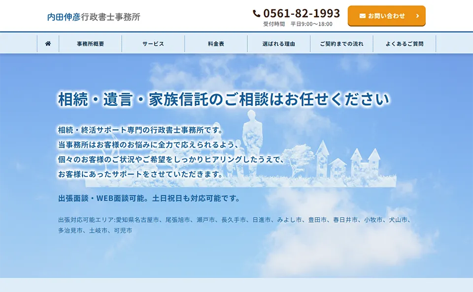 相続・終活サポート専門の行政書士事務所です。当事務所はお客様のお悩みに全力で応えられるよう、個々のお客様のご状況やご希望をしっかりヒアリングしたうえで、お客様にあったサポートをさせていただきます。 店舗/企業名 内田伸彦行政書士事務所... -