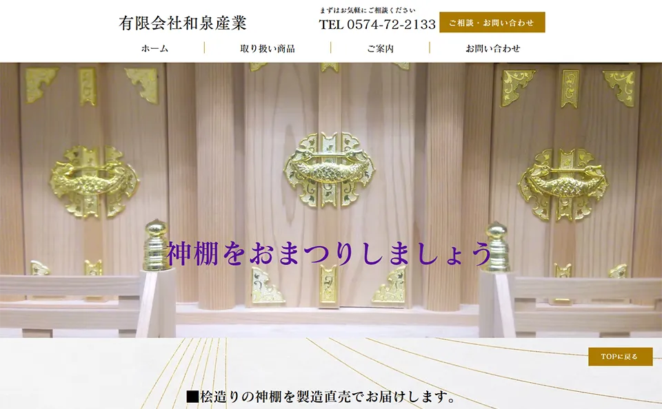 和泉産業では、伝統を守り、新しい技をみがきつつ神棚を製作させて頂いております。今まで培ってきた経験で、美しく、またいつまでもおまつり頂ける様、心を込めてお作りいたします。 店舗/企業名 有限会社 和泉産業 所在地 〒509-1105岐阜県加... -