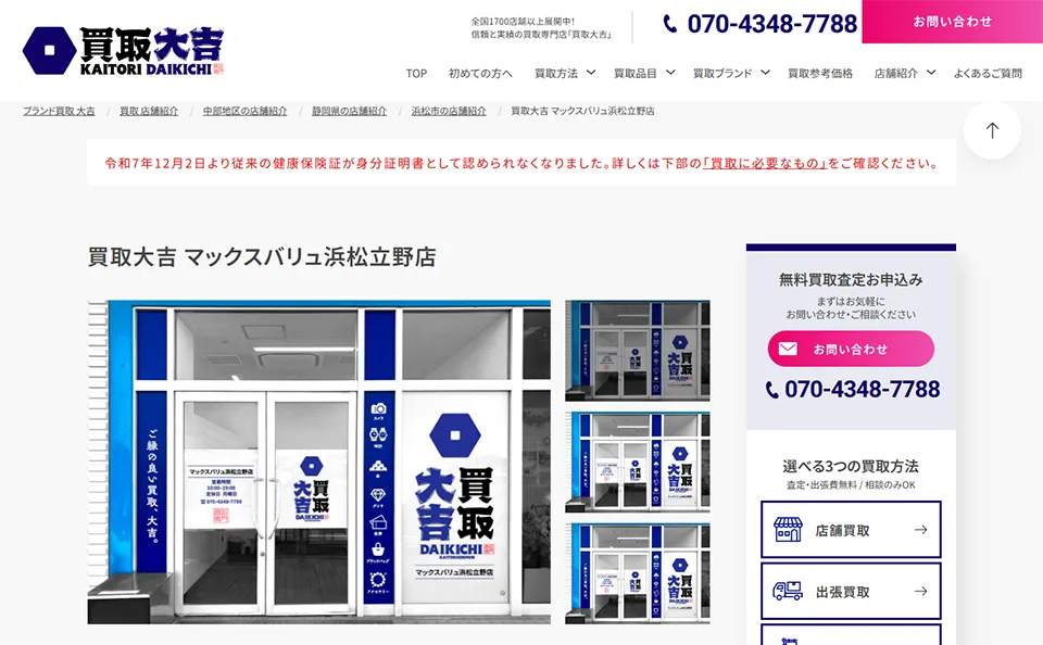 買取大吉 マックスバリュ浜松立野店