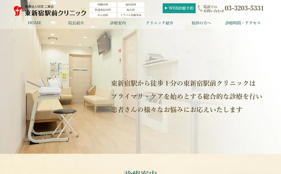 東新宿駅から徒歩1分の東新宿駅前クリニックはプライマリ・ケアを始めとする総合的な診療を行い患者さんの様々なお悩みにお応えいたします。 店舗/企業名 医療法人社団二葉会 所在地 〒160-0022東京都新宿区新宿7丁目27−12コンフォリア東... -